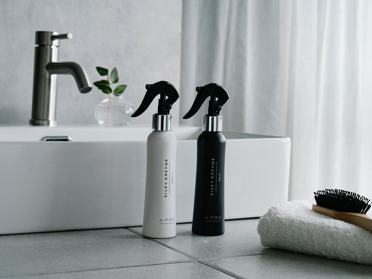 NEW【メーカー公式】 APRO|アプロ シルキーエンザイム|スムース (ボトル)HAIR|髪, 洗い流さないトリートメント, APRO | アプロ¥2,800 (税込価格 ¥3,080 )髪質改善発想。うねり・広がり・パサつき整え、柔らかくまとまる髪へYour Hair Will Be SmoothAnd Silky, Just Like When You Were A Child.トリートメントしているのに、なんだか毛先がまとまらない。 湿気でうねる、広がる。 毛先はパサつき、触ると少しごわっとする。 こんな悩みを、〝生まれつき〟〝髪質〟だからと、あきらめていませんか? APRO(アプロ)の「シルキーエンザイム」は、そんな悩みにアプローチしてくれる。酵素がたっぷり配合された、髪質改善・美容師監修の洗い流さないミストトリートメントです。リニューアルしてパワーアップ!選べる2タイプに 今ままでの「シルキーエンザイム 01」の良さはそのままに。 さらに、髪の悩み・クセの緩和のために、希少な新しい成分が配合されパワーアップしました。 (※「シルキーエンザイム 01」は販売終了しました) 従来との違いを一言でまとめるとしたら・・ 新しい有効成分が加わり、より髪の手触り・まとまりがよく◎ 好みの仕上がり、保湿感に合わせて、2タイプから選べるようになりました。 ※シルキーエンザイム特設ページはこちら >>>シルキーエンザイム スムース特徴とは? ■ SMOOTH(スムース) スムースは、今までの「シルキーエンザイム01」を引き継いだ仕上がりタイプです。 さらさら具合・保湿感・質感が好みだった方はこちらをお選びください。 仕上がりの潤い感は質感も変わりません。(香りも変わっておりません。) 今までの良さはそのままに、さらに内部補修、髪のクセの緩和・芯から強くなり、深部まで補修成分を届ける成分配合となっております。酵素の力で硬くなった髪をやわらかく パサつき・広がり・うねり、それら悩みの原因は、ダメージで髪の中のタンパク質が“固まっている状態”かもしれません。 実は、アイロンやドライヤーの熱で、 髪の中のタンパク質は少しずつ変化し、固まっています。 他にも、ヘアカラー・ブリーチ、紫外線などのダメージでも固くなっていく・・。 固まることで、髪が硬くなり、“パサつき・ごわつき”や“まとまらなさ”を感じるように。 そこで必要なのが、タンパク質にアプローチできる「酵素ケア」 酵素が固まりをほぐして、ゆるめて、本来の〝しなやかさ〟を取り戻す必要があるのです。パイナップル酵素×パパイヤ酵素のW酵素処方 たとえば、お肉をやわらかくする果物の力。 パイナップルやパパイヤに含まれる酵素は、食材を“ほぐす”働きがあります。 それと同じように、ダメージで固まってしまった髪のタンパク質にも、ほぐすアプローチを。 パイナップル酵素とパパイヤ酵素、2つの酵素の力で“硬くなった髪を柔らかく、ほぐす”。 ほぐすことで、しなやかで扱いやすい髪へと導く。 今までのシルキーエンザイムよりも、もっと酵素がたっぷり配合されています。まだ業界でも珍しい!炭酸こごみエキスとは 今回、新しく配合された注目の成分は「炭酸コゴミエキス」 この、コゴミエキスの魅力とは? まず、「こごみ」とは、山菜の一種であり、春に採れる山菜として有名な植物です。 APRO(アプロ)らしい、〝自然由来、植物の力〟にこだわり、しっかりケアしてくれる上に髪にも肌にもやさしいものを使っています。 髪質の改善をサポートをしてくれたり、クセを緩和、髪を芯から強くしてくれる魅力たっぷりな成分。 うねり、くせで悩んでいた方、ぜひ使ってみてほしいです。 まだまだ珍しい成分ですが、実は、美容や健康分野でも注目されてはじめていますよ。手も髪もベタつかない!洗い流さないミストだから、毎日続けやすい 慌ただしい毎日の負担を、少しでも軽く。 片手でシュッとスプレーして、乾かすだけ。 ドライヤーしながら、手やブラシ整えていくとみるみる髪がまっすぐ、おさまってくれます。 細かい霧状ミストが、髪1本1本に均一に広がり、ベタつかず、瞬時に潤い浸透。 まんべんなく栄養成分を届けます。 ✔ 手がベタつかない ✔ 根元がペタッとしない ✔ 細い髪も重くならない 「オイルは苦手」「トリートメントが重く感じる」 そんな方にも、ミストタイプでスプレー式だからこそ、簡単に、心地よく使えるという声もいただいています。 簡単だから毎日続けやすいのもポイントです。ケラチン高配合内側から補修するヘアケア 酵素だけではありません。 毛髪化学から生まれた、アプロ独自処方のケアブレンド成分: ・フェザーケラチン(保湿成分) ・アミノカクテル(保湿成分) ・18-MEA(保湿成分) 髪の主成分であるケラチン(タンパク質)も豊富にしっかり補給。 ダメージ補修成分が髪の芯まで浸透し、失われた成分を補給。 今まで感じたことのない髪の触り心地を実感できます。 空洞化した毛髪内部を満たし、ハリ・コシ・ツヤのある健康的な髪へ。ドライヤー時間を短縮できるその理由とは 毎日のドライヤー時間も、少しでも